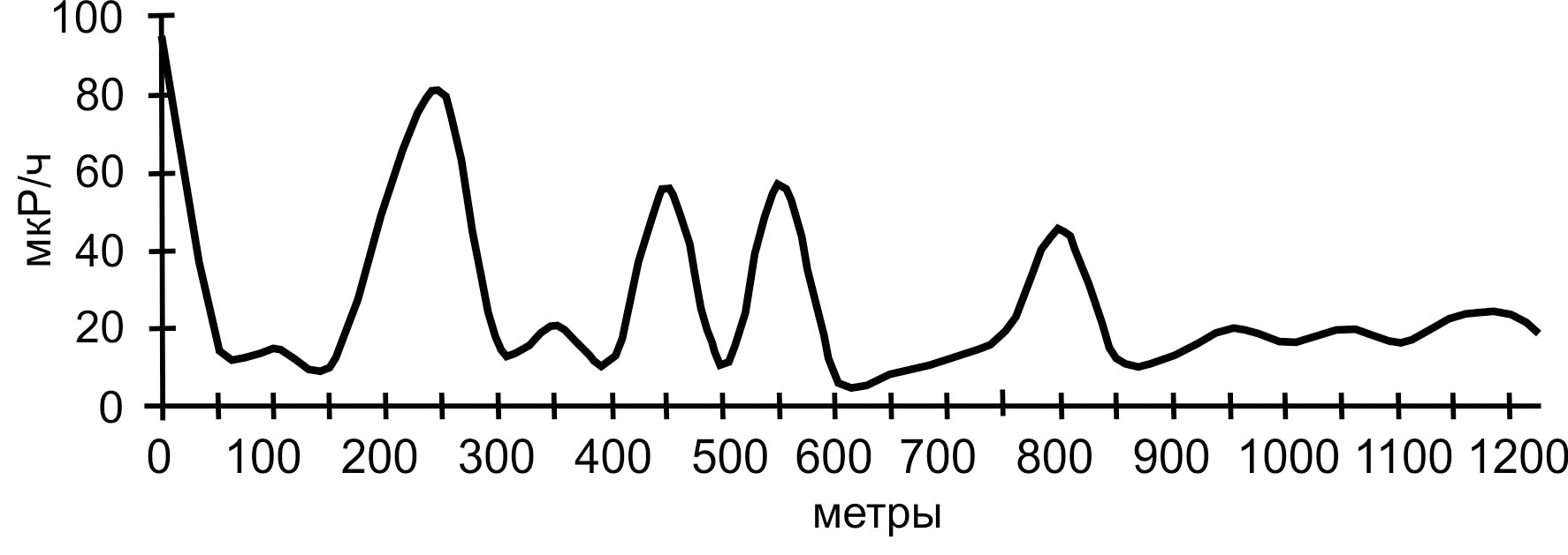 Рис. 3. Гамма-фон в зоне техногенного рассеяния радионуклидов руч. Пропадающий.