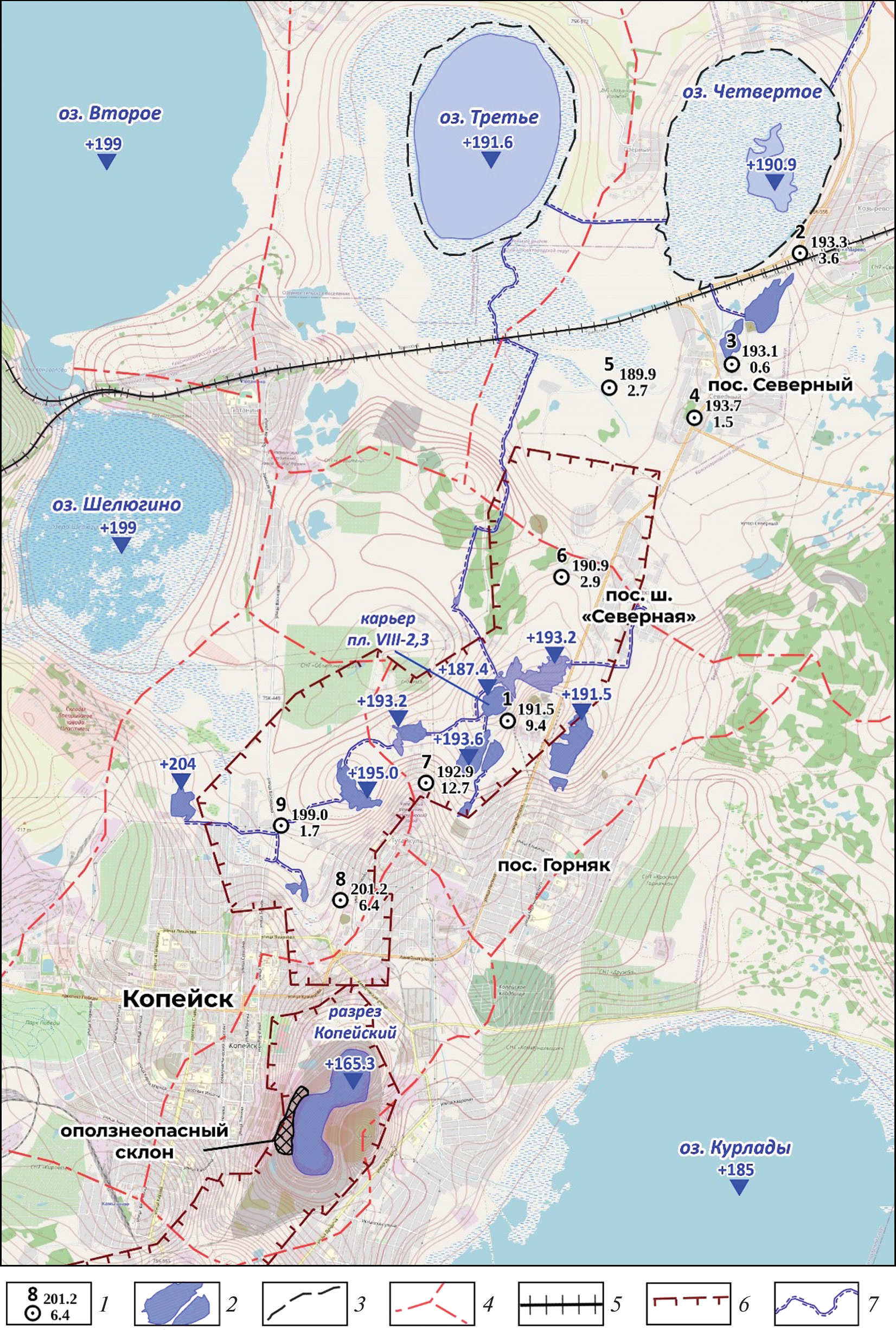Completion of the development of mineral deposits requires the development of new methods for managing areas disturbed by mining. The closure of mining facilities, especially those with a long history of mining forms a difficult environmental situation. This is determined by several factors. The development of deposits is accompanied by drainage measures changing the balance and structure of surface and groundwater flows, and new chemical agents are involved in the formation of the qualitative composition of the hydrosphere. The use of mined-out space during the development of schemes with roof collapse induces geomechanical processes forming the zones of collapse and displacement accompanied by disturbances of the Earth’s surface. The cessation of mine operation means the stop of drainage, which leads to the gradual filling of the depression funnel, the formation of flooding areas and mine water outlets to the surface. Unstable rocks in the quarry sides, on which there were landslides even during drainage, become especially dangerous areas when the water level rises. Taking in consideration that residential and industrial buildings are often historically located in close proximity to mines (sometimes even within the mining allotment), the hydrogeoecological problems of old industrial areas at the post-operational stage become very acute. At the same time, in many cases it is difficult to determine, which factors, natural (features of the geological structure, geomorphological conditions, water content of the period) or technogenic (cessation of drainage) are responsible for territory flooding, especially in the areas distant from the objects of completed mining. This gives rise to numerous speculations and leads to irrational technical solutions. By the example of the Chelyabinsk coal basin, the ecological and hydrogeological problems are considered that arise after mining completion and drainage termination. The measures for reducing their negative impact on the hydrogeoecological conditions of the territory are proposed.