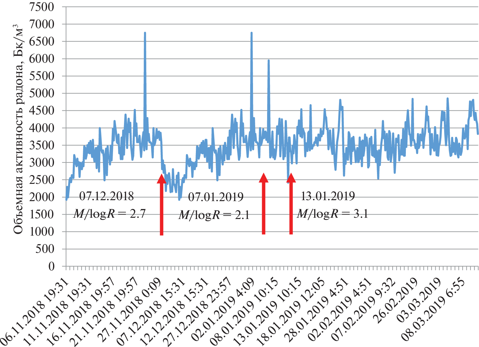 - Kozlova, I.A., Biryulin, S.V., Yurkov, A.K., Demezhko, D.Yu. Izmeneniya ob’emnoi aktivnosti pochvennogo radona i temperaturnye variatsii v skvazhine vo vremya protsessa podgotovki zemletryaseniya [Volume radon activity changes and temperature variations in the well during earthquake preparation]. Geoekologiya, 2021, no. 6, pp. 28–36. https://doi.org/10.31857/S0869780921060059. (in Russian)