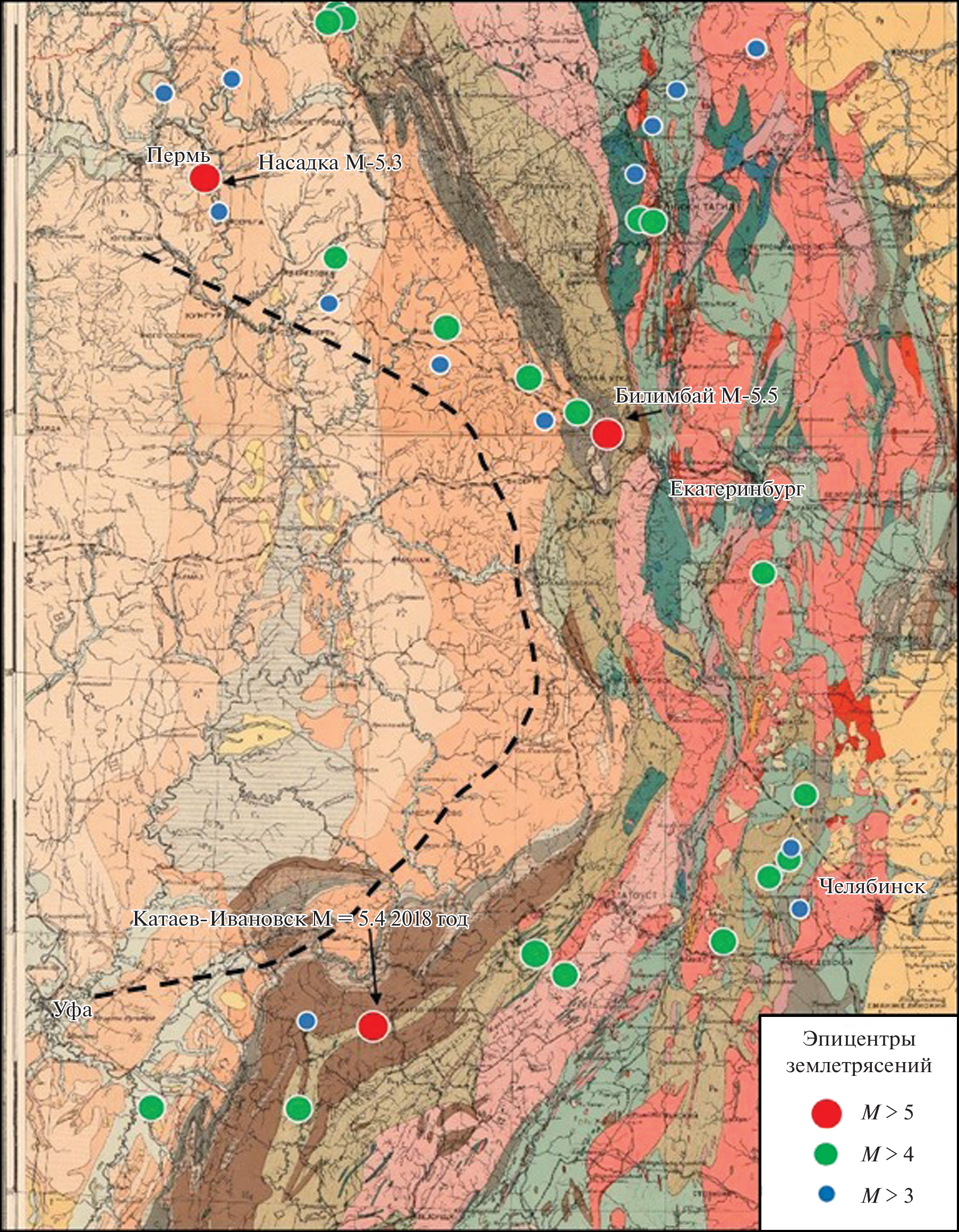 - Tevelev, Al.V., Tevelev, Ark.V., Khotylev, A.O., Prudnikov, I.A., et al. Tektonicheskaya obstanovka v raione Katav-Ivanovskogo zemletryaseniya v sentyabre 2018 g. (Yuzhnyi Ural) [Tectonic situation in the area of Katav-Ivanovsk earthquake in September 2018 (the Southern Urals)]. Vestnik MGU, Ser. 4. Geologiya, 2019, no. 2, pp. 23–29. (in Russian)