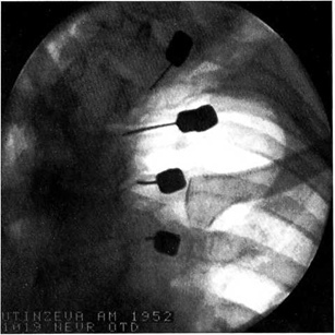 Рис. 4. Радиочастотная деструкция фасеточных нервов при сколиотической деформации грудного отдела позвоночника.
