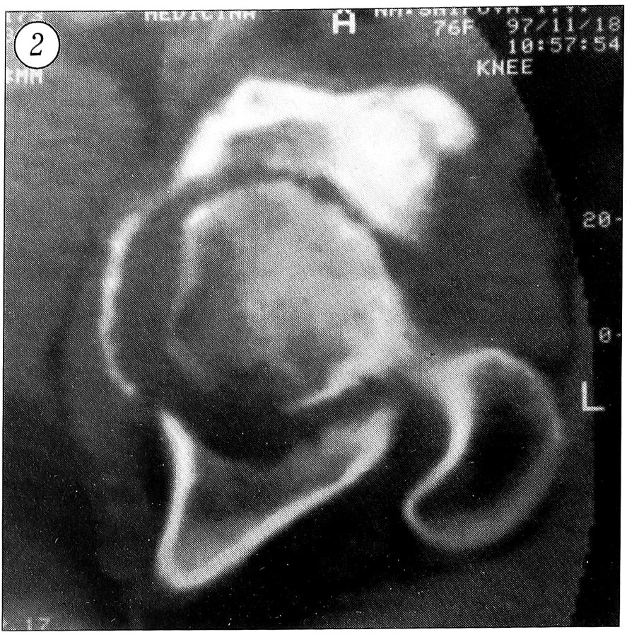 При компьютерной и магнитно-резонансной томографии обнаруживаются значительные дефекты суставной поверхности вертлужной впадины — от ее избыточных размеров (рис. 2) до фрагментации и смещения отломков. Определяются параартикулярные оссификаты, дополняющие картину протрузионного артроза тазобедренного сустава. Компьютерная томография дает возможность визуализировать состояние анатомических структур вертлужной впадины, их деформацию, пространственное расположение, величину диастаза между отломками, наличие дефекта в дне, направление и степень смещения крупных фрагментов, а также судить о массивности последних, что весьма важно для определения показаний к реконстмелкоочаговая оссификация, преимущественно по задней поверхности тазобедренного сустава. Наличие крупных обызвествлений ограничивает подвижность в суставе (причем в большей степени, чем инконгруэнтность), что сказывается на его статодинамической функции.