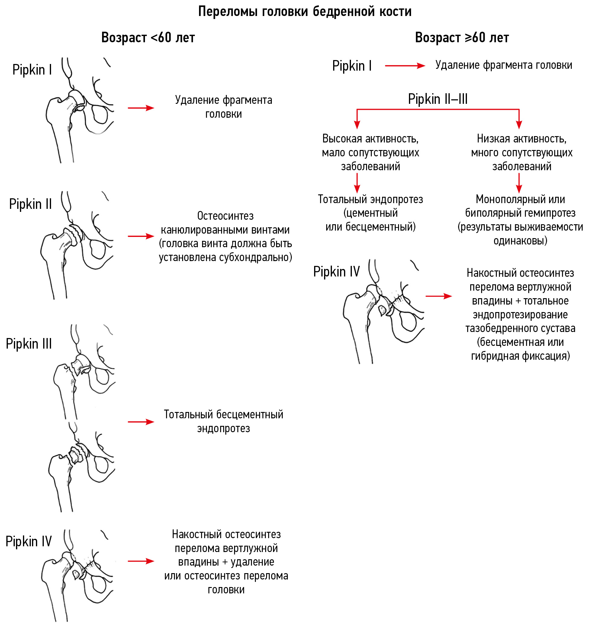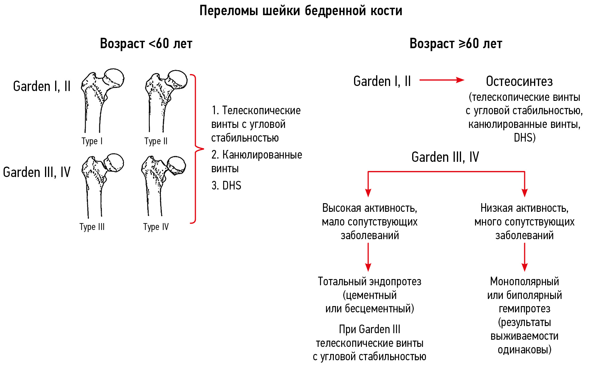 Для систематизации переломов ШБК в литературе наиболее широко используют классификации Garden [16] и Pauwels [17], позволяющие, в зависимости от типа перелома, определить тактику лечения и прогнозировать его результаты.