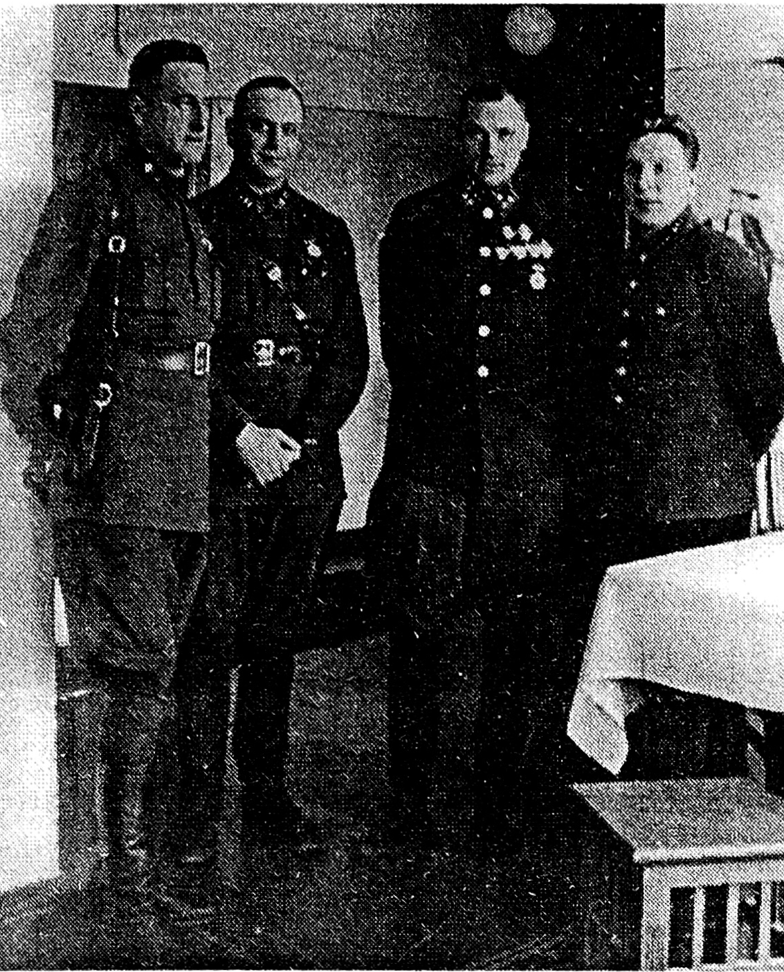 Рис. 2. При выписке из госпиталя 28 мая 1942 г.: в центре командарм К.К. Рокоссовский (правее) и главный хирург госпиталя А.В. Каплан, справа начальник госпиталя Н.П. Рудаков, слева его заместитель А.И. Роговский.