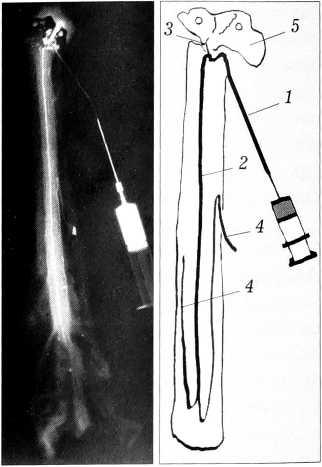 Забор спинного мозга производили после задней ламинэктомии с последующим выделением его в твердой мозговой оболочке из спинномозгового канала с уровня С2-СЗ до L4. После рассечения твердой и мягкой мозговых оболочек катетеризировали одну большую радикуломедуллярную артерию. (При диаметре артерии менее 500-600 мкм катетеризацию ее признавали невозможной и ограничивались зарисовкой схемы расположения сосудов.) После катетеризации производили контрастирование бассейна передней спинальной артерии для его выявления и визуальной оценки красящим веществом — 0,5% раствором синего Эванса или бриллиантового зеленого. Составляли схему расположения сосудов, после чего в катетер вводили контрастное вещество миодил. В некоторых случаях при форсированном введении миодила происходил разрыв передней спинальной артерии в местах ее сужений — гемодинамических шлюзах, что делало дальнейшее проведение ангиографии невозможным. После инъекции 1-2 мл миодила и визуального контроля заполнения артерий выполняли снимки на стационарном рентгеновском аппарате EDR-750B (Венгрия) и SUPERIX 800N («Siemens», Германия).
