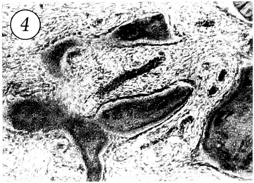 Рентгенологические изменения у всех больных ОФД были весьма однотипными и характерными. Патологический очаг располагался главным образом в толще кортикального слоя по передней, реже — по переднебоковой поверхности (рис. 2). Иногда процесс, первоначально локализовавшийся в кортикальном слое, распространялся на 1/3—2/3 поперечника кости. Вздутие кортикального слоя по передней поверхности большой берцовой кости создавало саблевидную деформацию сегмента, при этом наружный контур кортикального слоя всегда был четкий, гладкий, без дефектов и проявлений периостальной реакции. Патологический очаг состоял из округлых или имела вид «матового стекла». Эти участки были разделены грубыми перегородками. Наиболее характерным рентгенологическим симптомом ОФД являлась стертость, смазанность рентгенологического рисунка, обусловленная нечеткостью контуров участков разрежения и уплотнения.