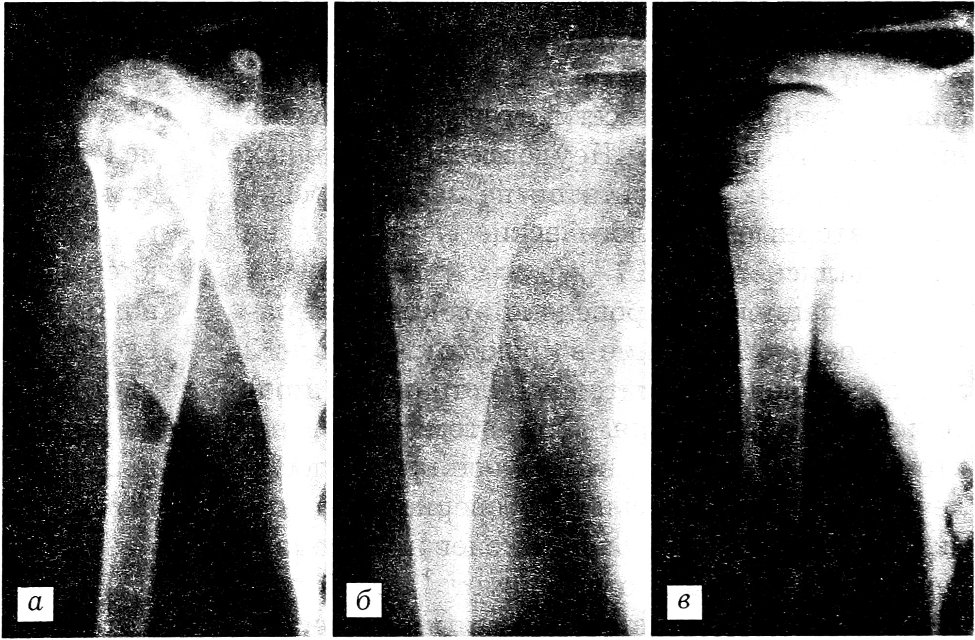 Рис. 1. Рентгенограммы больного с солитарной кистой в верхней трети плечевой кости.