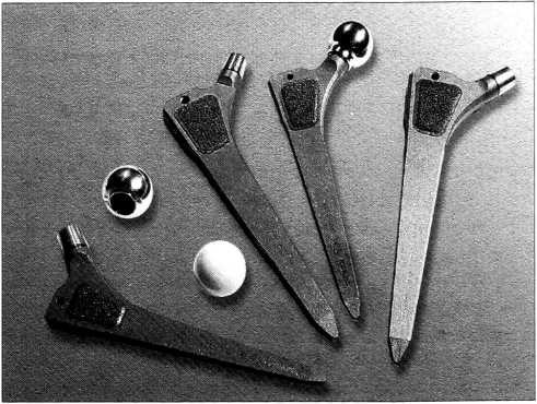 Эндопротез используется при деформирующем коксартрозе, асептическом некрозе головки бедренной кости, диспластическом коксартрозе, ревматоидном артрите, ложных суставах шейки бедренной кости, медиальных переломах шейки бедра у пожилых людей, болезни Гаше, красной волчанке и других заболеваниях тазобедренного сустава (рис. 5). Операции выполняются из наружного доступа по общепринятой методике и включают следующие этапы: разрез кожи и подкожной клетчатки, рассечение мышц, капсулы, резекцию головки, подготовку вертлужной впадины, установку чашки эндопротеза, подготовку бедренного канала с помощью рашпилей, установку ножки и головки эндопротеза, вправление их в вертлужный компонент протеза, дренирование сустава, при необходимости дренирование подкожной клетчатки и мышц, шов мягких тканей. Необходимо применение антибиотиков накануне операции, во время ее проведения и в послеоперационном периоде.