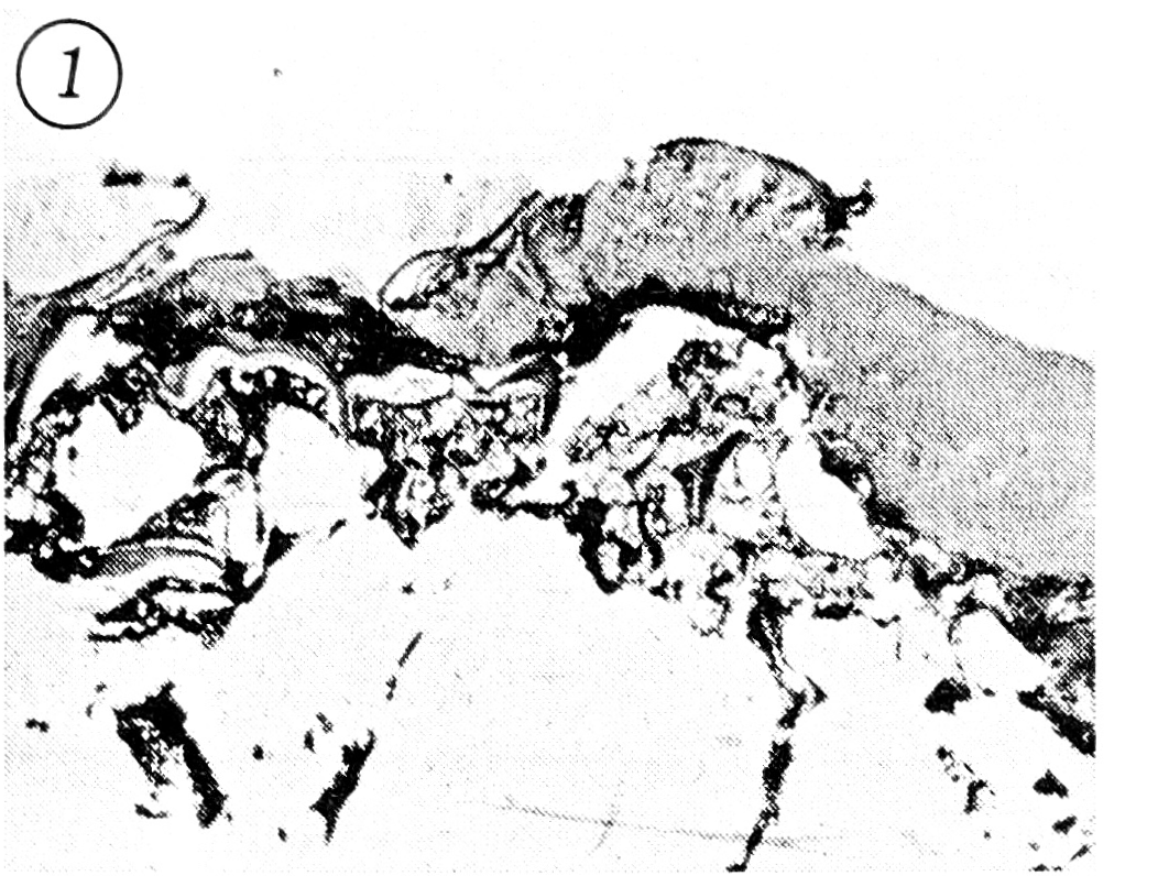 Материал и методы исследования. Материалом исследования послужили биоптаты тканей тазобедренных суставов с признаками хондролиза от 15 больных, оперированных в отделении заболеваний суставов у детей и подростков с 1991 по 1995 г. (см. таблицу). Фрагменты патологически измененных тканей тазобедренного сустава получали в ходе мобилизирующе-декомпрессивных операций с передней капсулотомией. Иссечение фрагментов суставной поверхности выполняли на границе макроскопически наиболее пораженных (обычно наиболее нагружаемых) участков. Полученные костные и мягкие ткани фиксировали в формалине, разрезали на кусочки с максимальным сохранением топографии и заливали в целлоидин. Гистологические срезы толщиной 10—12 мкм окрашивали гематоксилином и эозином, часть срезов — по Ван-Гизону и исследовали по методу светлого поля в микроскопе ЛЮМАМ-Р8.