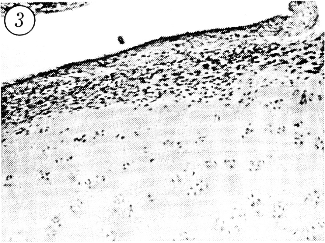 1) поверхностная резорбция паннусом, наблюдавшаяся нами через несколько месяцев после появления клинических симптомов хондролиза. Этот механизм, по-видимому, может срабатывать и в более ранние сроки, не сочетаясь с дистрофией и лизисом хрящевого матрикса, и в конечном итоге приводит к полному либо частичному по глубине разрушению суставного хряща. Исходами паннусообразования могут стать полное замещение участка хряща фиброзной тканью, а также фиброзирование поверхностной зоны его при сохранении более глубоких зон, где хрящ обычно претерпевает выраженные дистрофические изменения;
