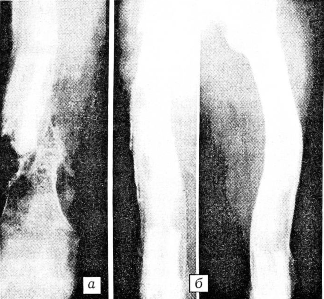 Рис. 4. Сформировавшийся регенерат бедренной кости после этапного замещения ее дефекта.
