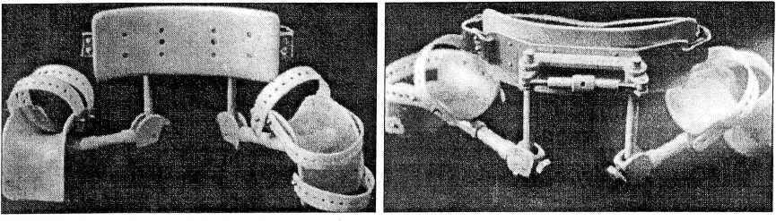 Рис. 2. Функциональный аппарат для вправления вывиха бедра (вид спереди и сзади).
