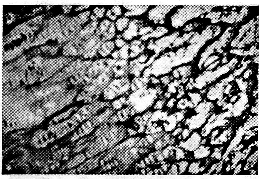 Во II серии, в которой диастаз в 1—2 мм создавался на 2~3-и сутки после разрыва зоны роста, гистологические исследования показали полиморфность структуры зоны роста. Наряду с сохранными участками слоев эпифизарной пластинки обнаруживалось значительное количество соединительнотканных тяжей, отмечалось образование костно-хрящевой мозоли.
