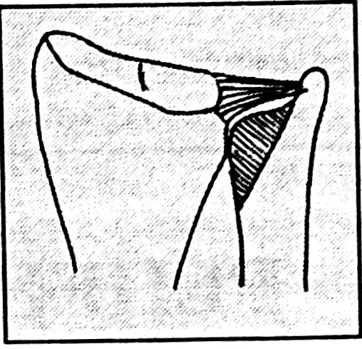 Дистальные отрывы ТФХК (1C по Palmer) преимущественно бывают неполными, и стабильность ДЛЛС не нарушается. В этих случаях G.G. Poehling и соавт. [41] предлагают ограничиться артроскопическим удалением краев разорванных связок. W.P. Cooney [11], наоборот, считает целесообразным восстановление разорванных связок при их отрыве от локтевой кости.