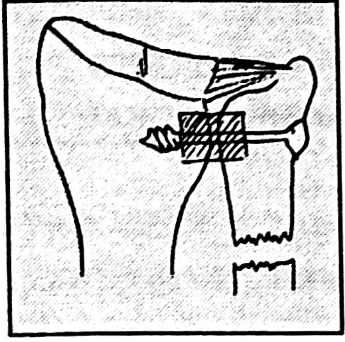 Рис. 1. Пластинчатая, «вафельная» резекция дистального конца локтевой кости (P. Feldom и соавт., 1992).