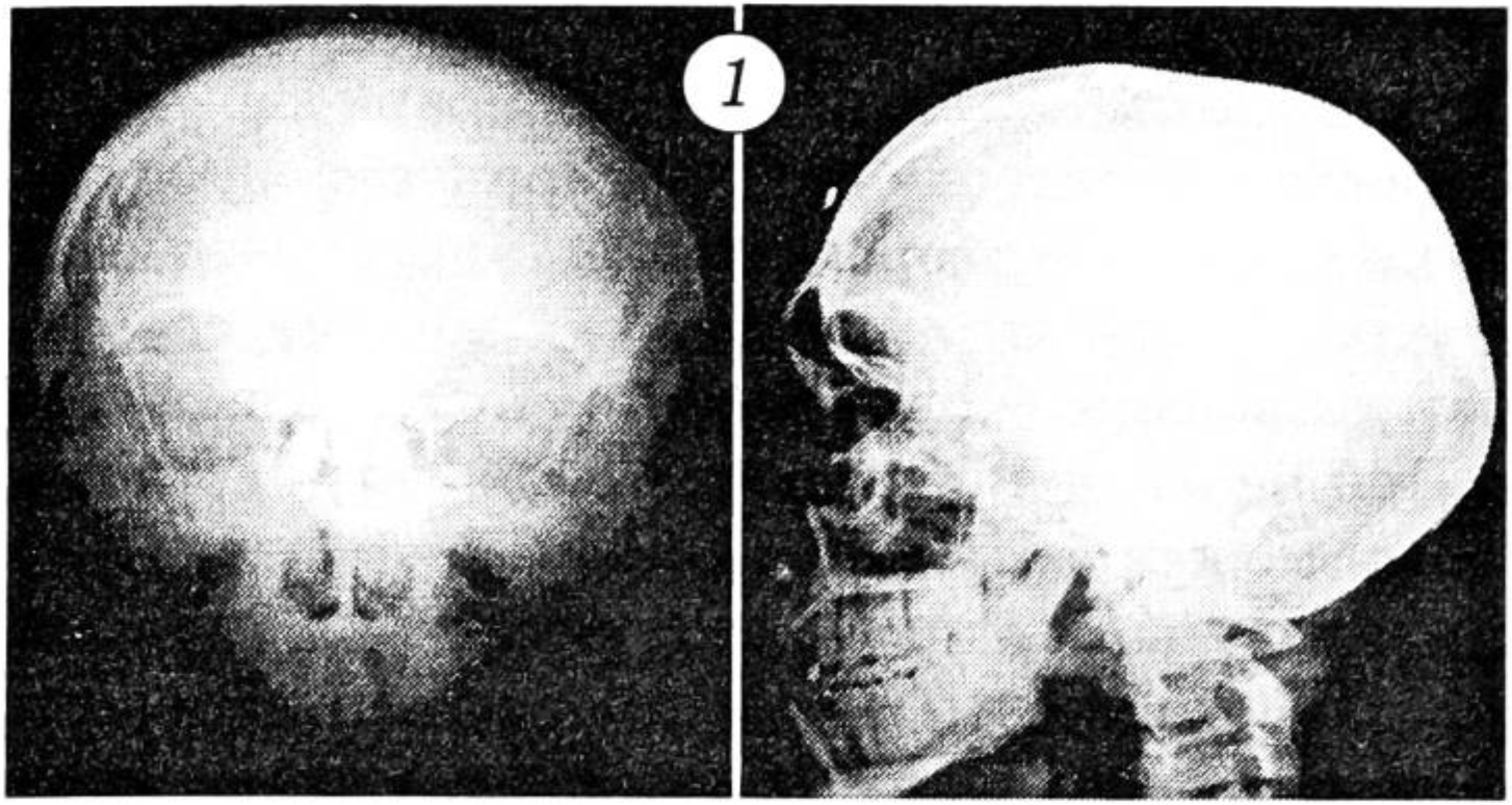 Рис. 1. Рентгенограммы черепа больного Е. в прямой и боковой проекции до операции.