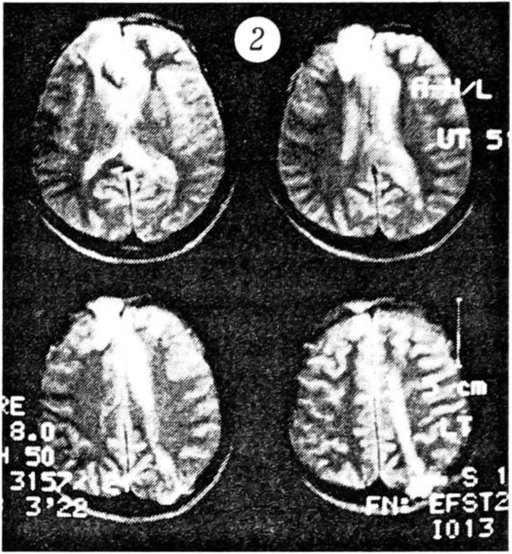 Рис. 2. Магнитно-резонансная томограмма головного мозга того же больного через 1 год после операции.