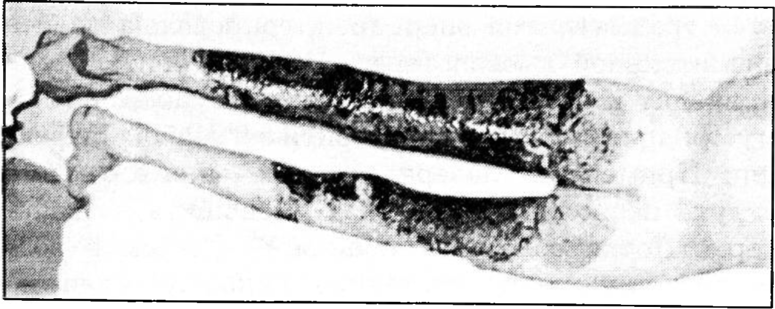 При ожоговом истощении возникают нарушения репаративных процессов в ране, генерализованный остеопороз, атрофические явления в мышцах и связках, подвывихи и вывихи в крупных суставах (рис. 2), снижается масса тела, что затрудняет дальнейшее лечение.