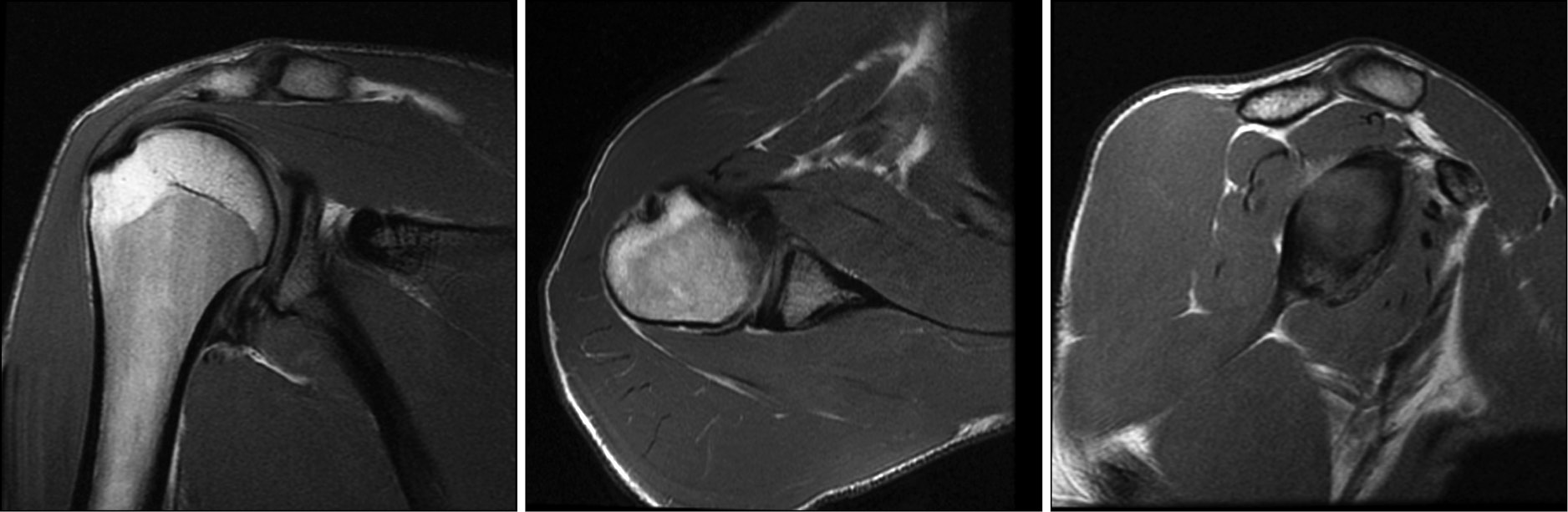 Fig. 1. Magnetic resonance imaging of the shoulder joint with glenoid deficiency.
