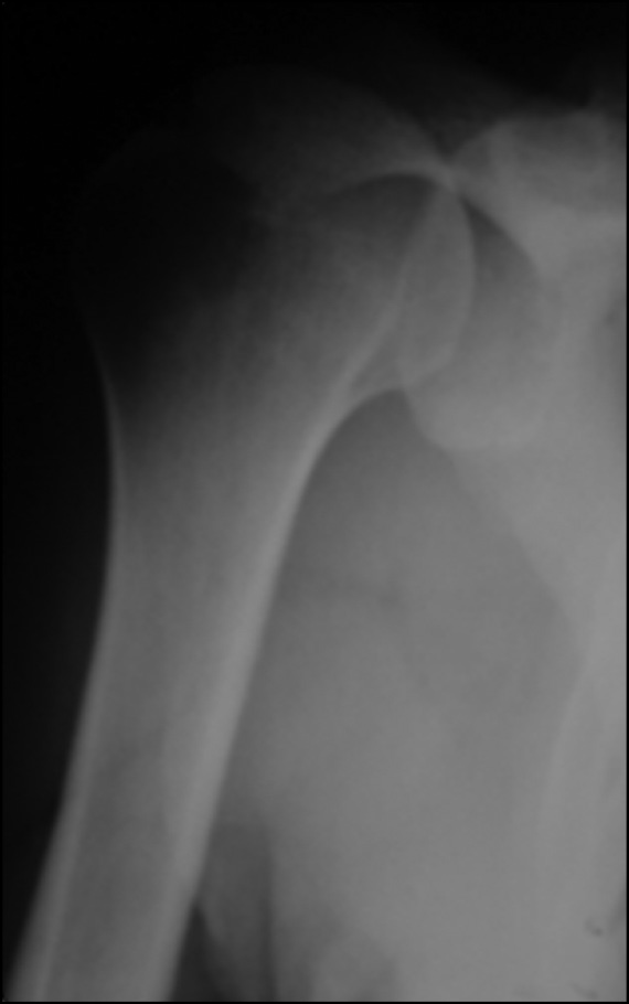 Fig. 3. Radiography of the shoulder joint before arthroscopic Latarjet surgery.