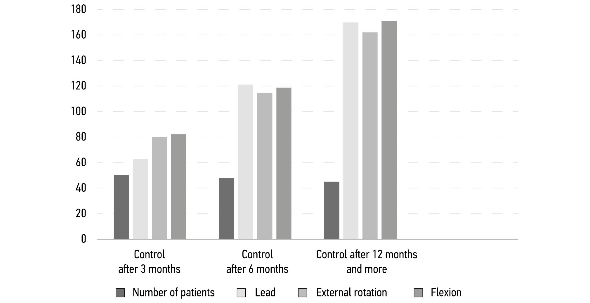 According to Kim et al., postoperative relapses occurred in 5.1% of athletes with post-traumatic pathology. When we used the Latarjet arthroscopic technique, the frequency of re-dislocations within 5 years was 2%, revealing its advantage.
