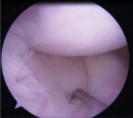 During the revision of ACL reconstruction, in 1 (1.1%) case, the location of the tibial channel was near the anterior horn of the internal meniscus (Figs. 4, 5).