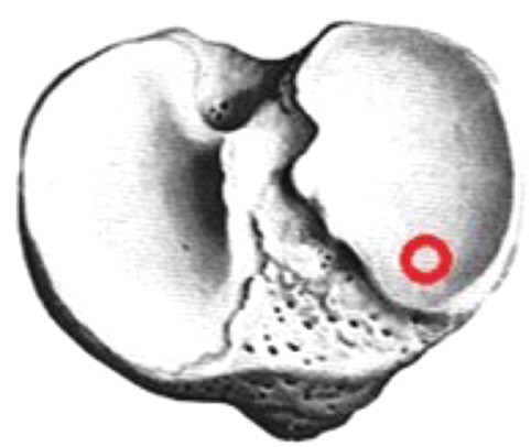 Fig. 4. Location of the tibial canal near the anterior horn of the meniscus.