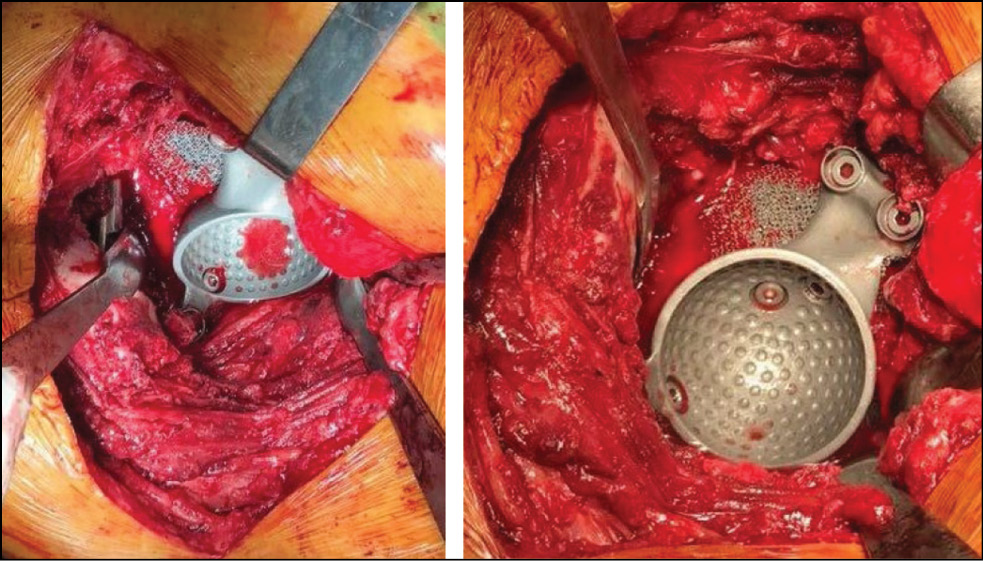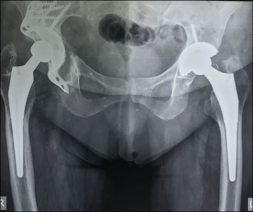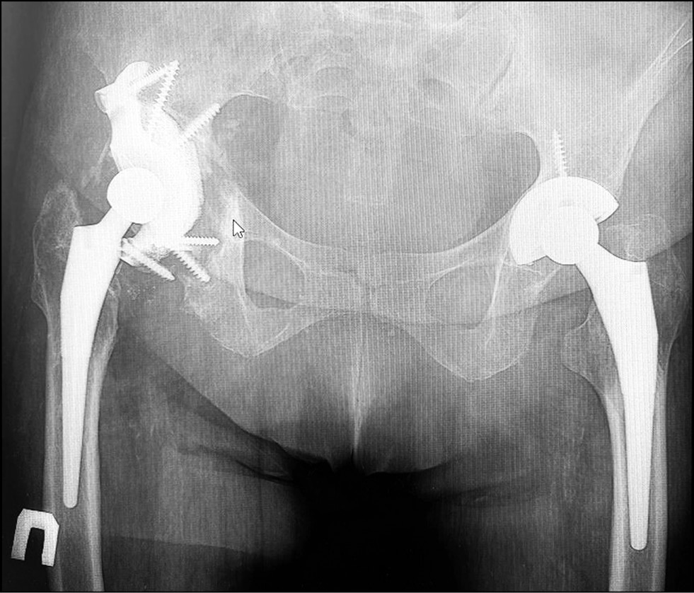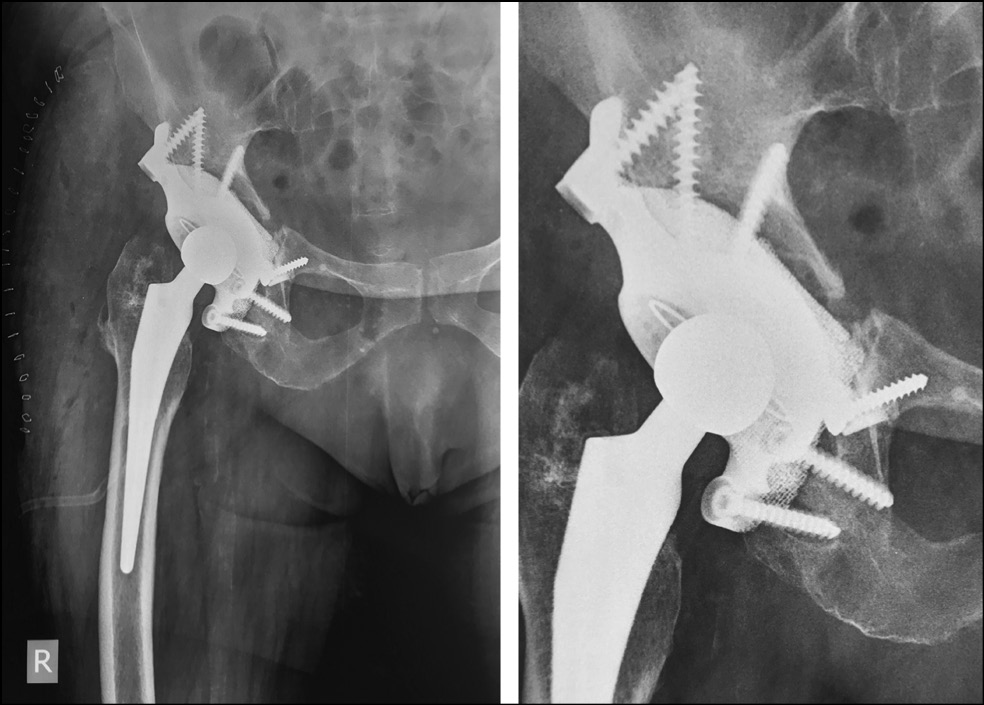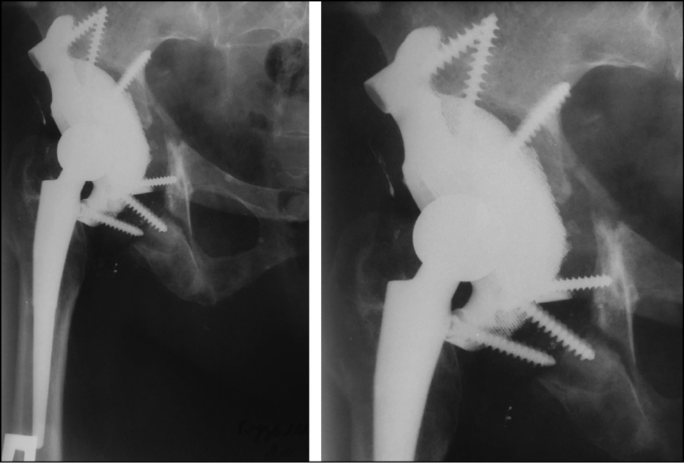 Для восстановления тяжёлых костных дефектов вертлужной впадины ранее применялись разные варианты реконструкции, результаты которых были неудовлетворительными, о чём сообщалось в опубликованной литературе. Эндопротезирование тазобедренного сустава с одномоментным восстановлением целостности вертлужной впадины с применением металлостеосинтеза пластиной и винтами привело к ревизии в 47% случаев в сроки от трёх недель до 124 месяцев после операции [4].