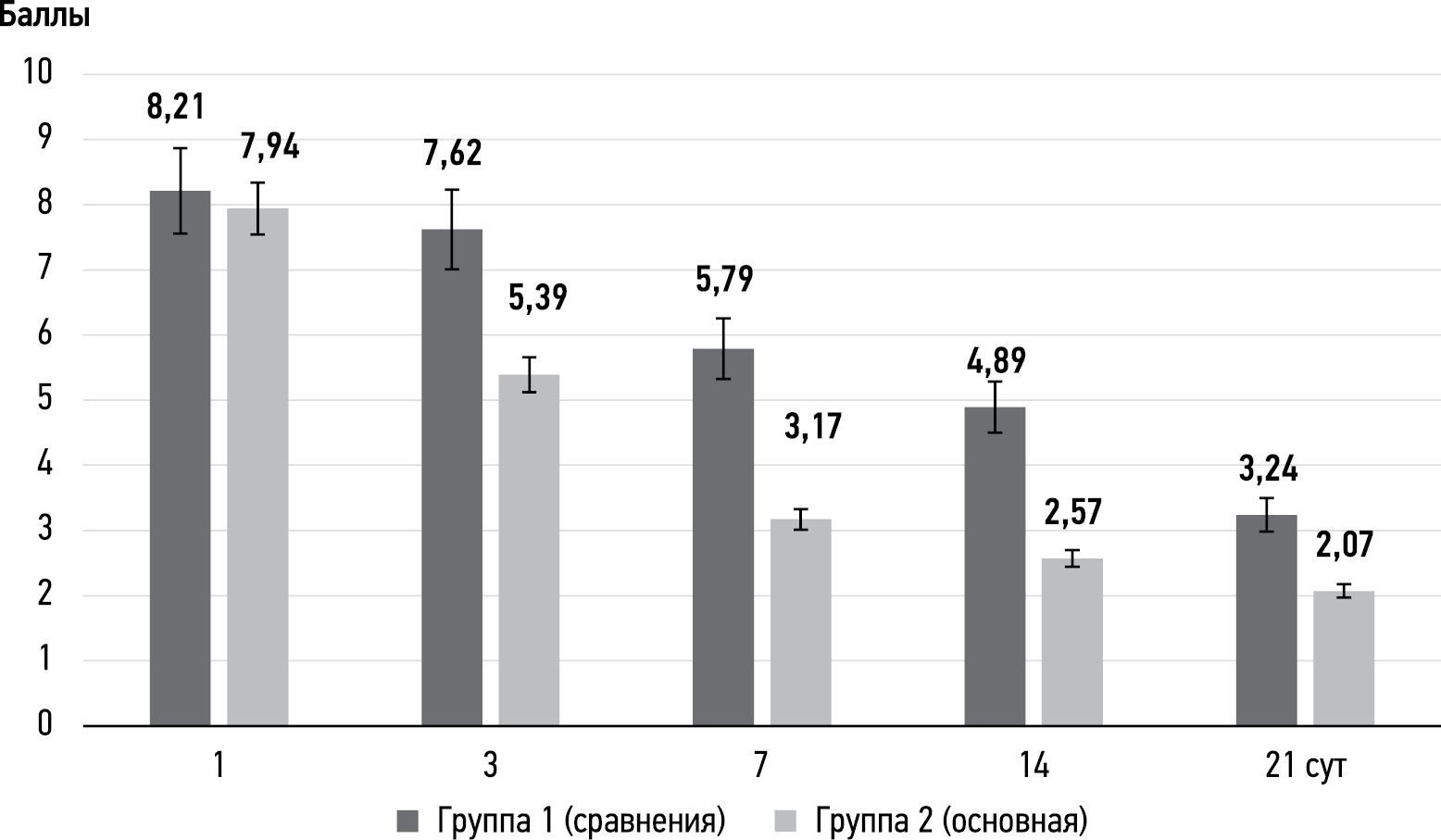 After 1 month, the value of this parameter increased to 80.9±7.8 points in the main group, which was statistically significantly higher (p <0.05) than that in the comparison group (72.2±6.7 points).