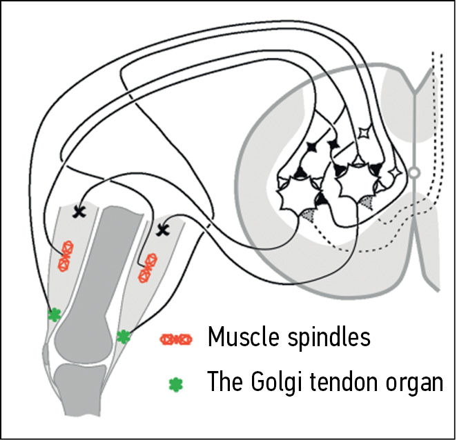 - Tendon Golgi organs (receptors of the muscle tension regulation system)