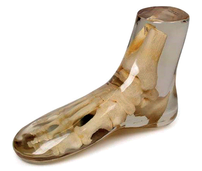 В результате постепенной сборки костей получена целостная костная система голеностопа. Костная система анатомически верна за счёт использования подложки для сборки костей стопы, фиксации размера суставной щели пластиковыми перемычками и заполнения этой щели силиконовым герметиком. Готовая система скрепляется воедино только при помощи силикона в суставных щелях, что обусловливает достаточную гибкость и подвижность конструкции.