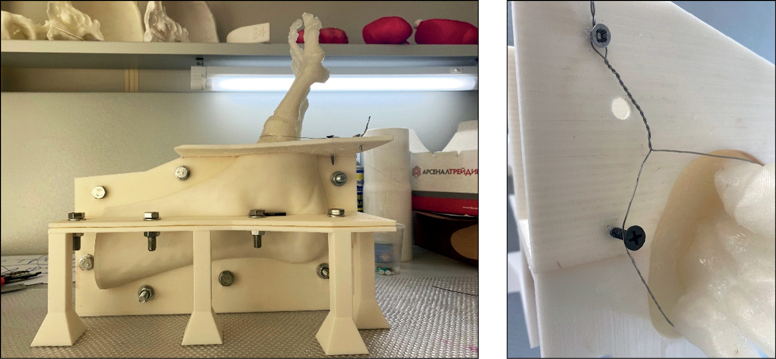 MATERIALS AND METHODS: The following stages of the simulator’s development have been completed: acquiring ankle bone samples, creating a mold for casting, and constructing the simulator. The results of computer and magnetic resonance imaging were used to construct bone samples, from which a computerized 3D model of the bones of the foot and ankle joint was obtained. Using additive technologies, anatomically correct reproductions of human foot and ankle bones were made. At the next stage, a three-dimensional digital model was developed, and a mold for casting the finished product was made. Bone samples collected in a single structure were placed inside the mold. Next, a step-by-step filling of the form with a soft gel-like material was performed. In this case, a self-vulcanizing silicone rubber composition is selected, which, after solidification, imitates human soft tissues.