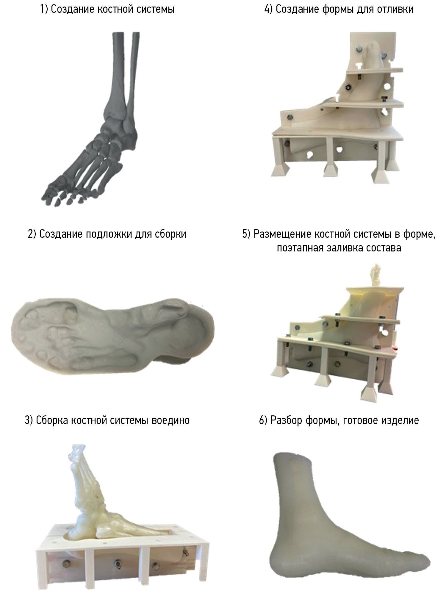 Процесс изготовления симулятора для подготовки рентген-лаборантов к выполнению рентгеновских исследований голеностопного сустава и стопы разделён на несколько основных этапов: