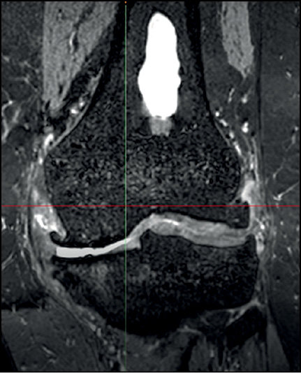 - суставная щель значительно сужена, преимущественно в медиальном отделе;