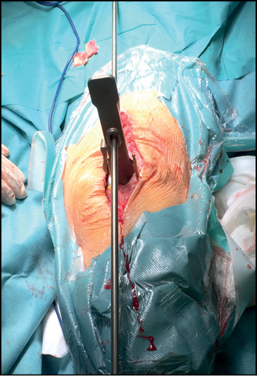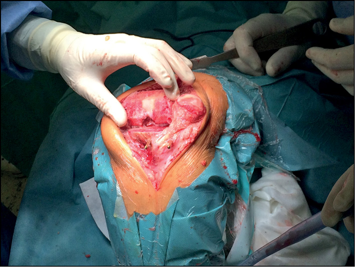 Fig. 2. Performing a distal cut of the femoral condyles.