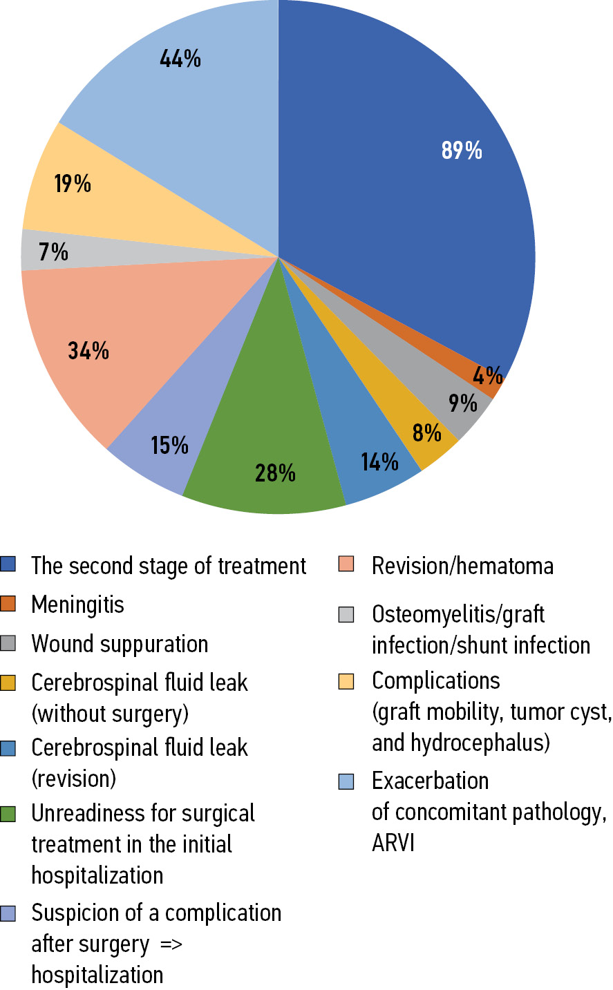 MATERIALS AND METHODS: A neurosurgical complication was defined as any unwanted, unintended deviation from the ideal course of the treatment process for a patient with neurosurgical pathology. The study included patients operated on for neurosurgical pathology at the Center for Neurosurgery (Moscow) from January 2019 to December 2020. To record all complications, an electronic database was created, where information about all neurosurgical complications was entered.