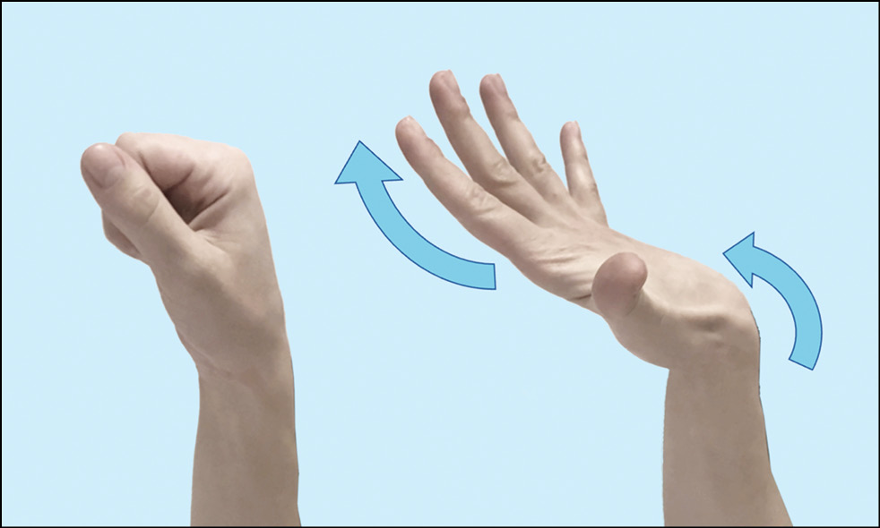Рис. 5. Тест Kleinman: сгибание кисти с разгибанием пальцев