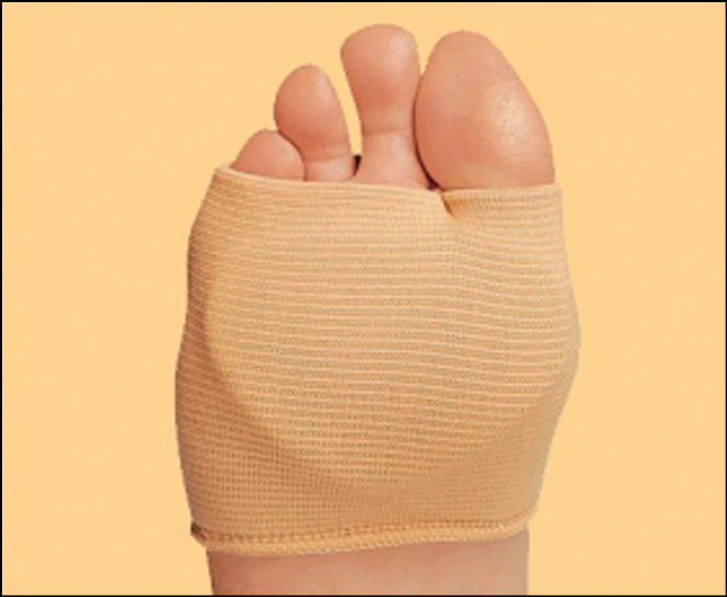 Большинство приспособлений данной группы представляют собой мягкоэластичную трикотажную или тканевую манжету с гелевой (силиконовой) плоской пластиной толщиной от 2 до 3 мм. Такой пелот-диск защищает передний отдел стопы от ударных нагрузок при ходьбе и препятствует образованию натоптышей, то есть является протектором и должен применяться только как паллиативное средство и врачам об этом необходимо информировать пациентов. Так, например, компания Podospecial (Италия) выпускает под торговой маркой Zanni приспособление Fascia Metatarsale, которое рекомендуют использовать в том числе и при сахарном диабете. В нем также манжета несет лишь фиксирующую функцию.