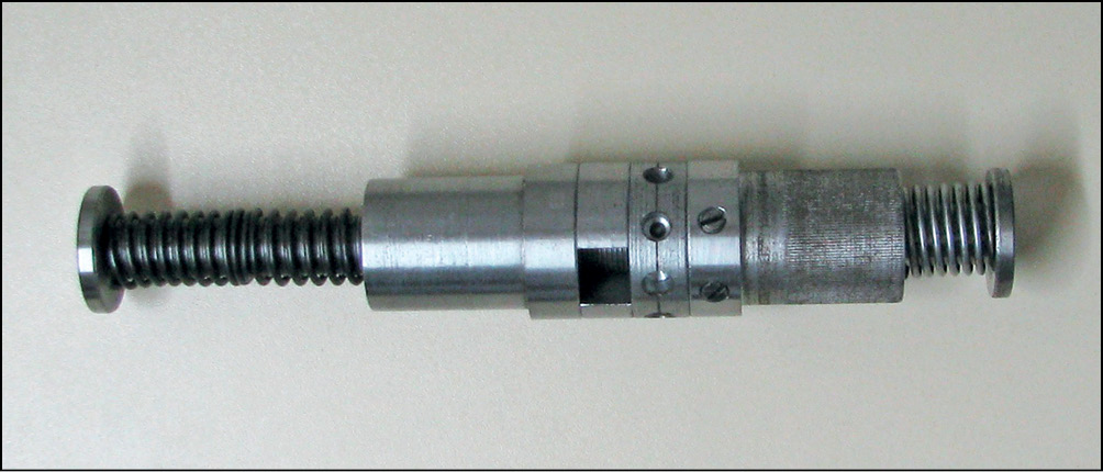 При выкрученных фиксирующих элементах и удаленных шайбах жесткости центральная часть устройства имеет возможность вращаться по стержню внутри втулок, причем при повороте на 360° (один полный поворот) против часовой стрелки между ним и втулкой образуется зазор, равный 1 мм, а при повороте на 360° по часовой стрелке — уменьшается также ровно на 1 мм. Изменение длины несущего модуля осуществляется на основании клинических признаков методики теста больших пальцев по Щербину – Piedalu или другим способом. Жесткость системы по окончании коррекции длины обеспечивается за счет введения шайб жесткости в сформировавшийся зазор и фиксирующими элементами.