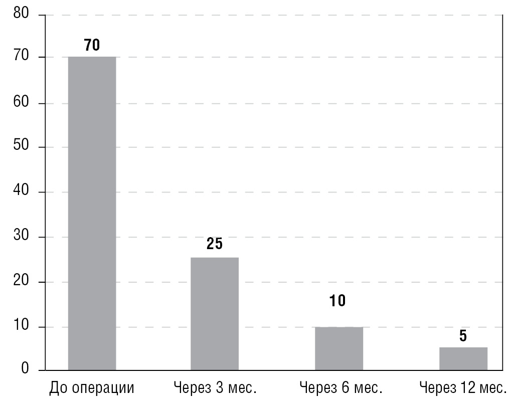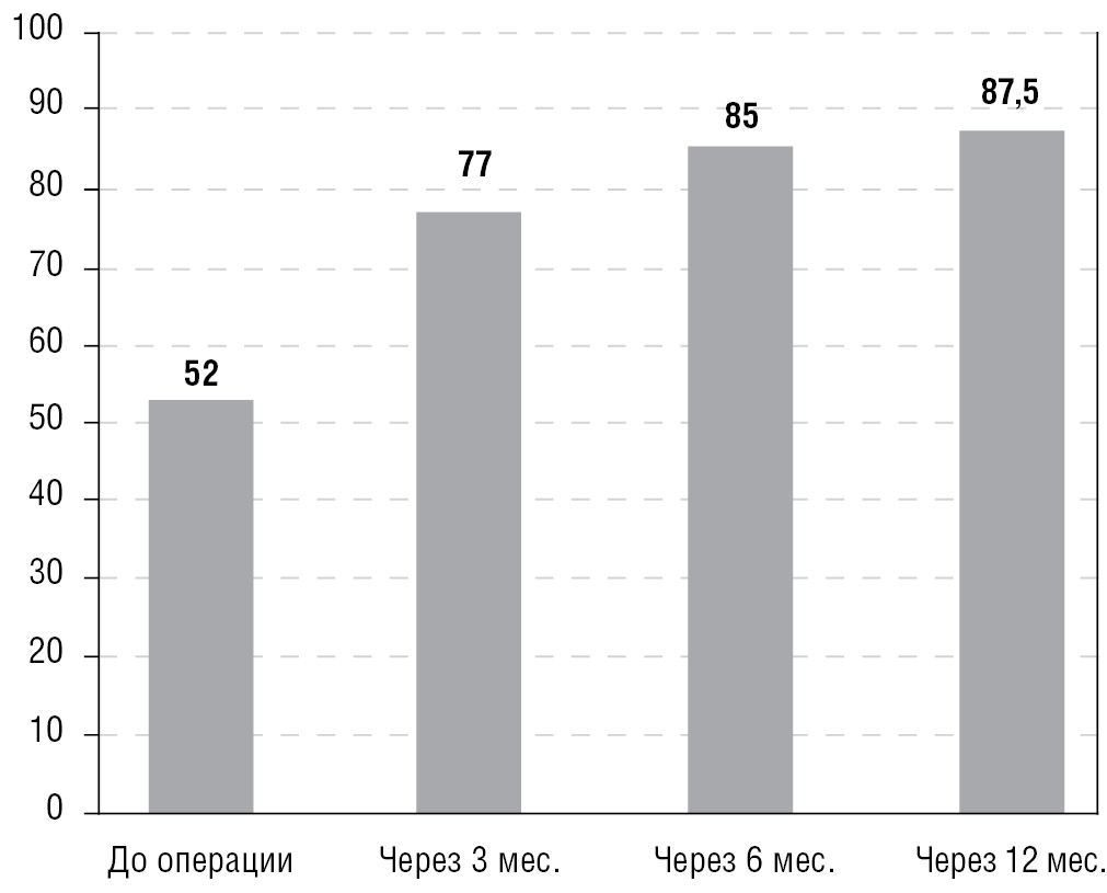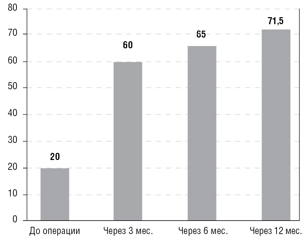 Результаты проведенного хирургического лечения оценивали через 3, 6 и 12 мес. после операции.