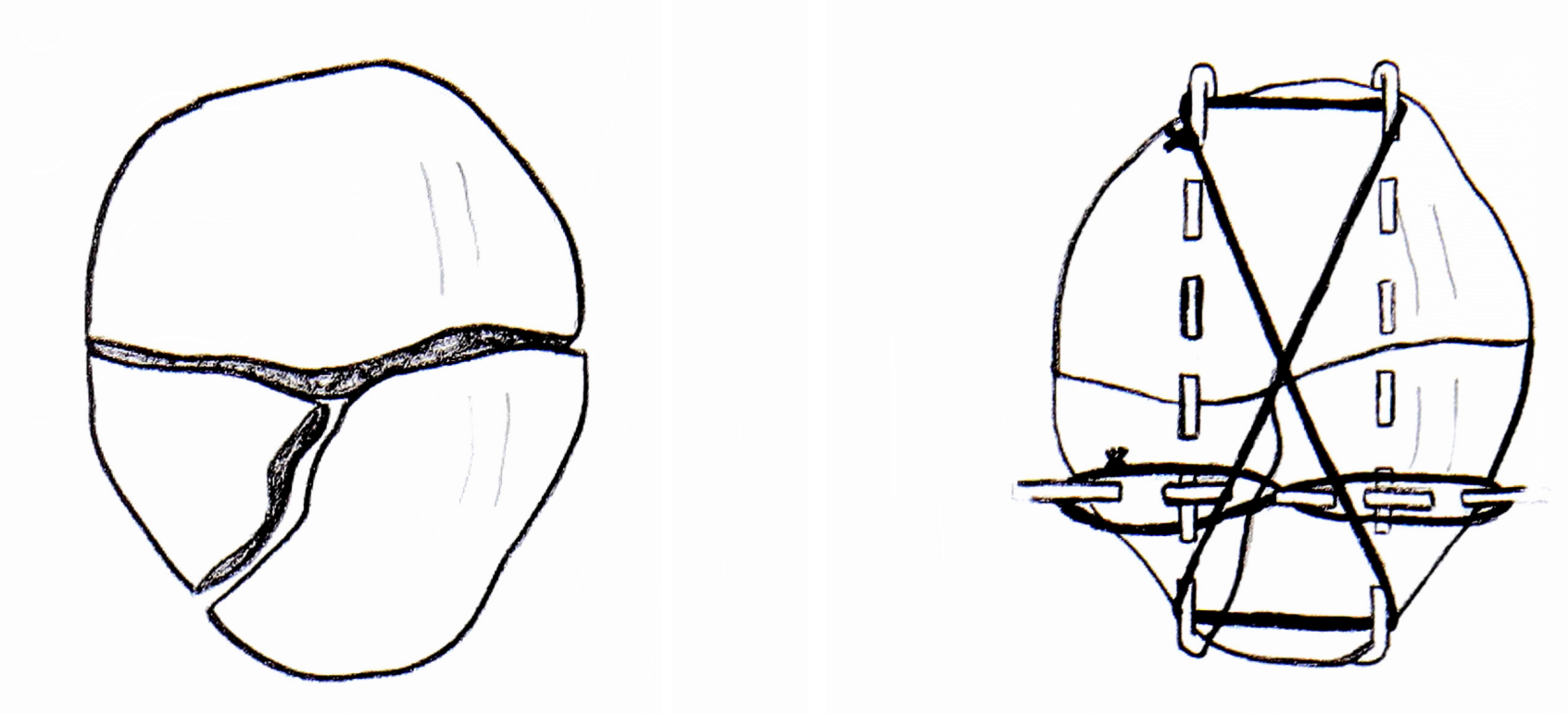 Fig. 1. Patella osteosynthesis with 3 wires and 2 wire loops.