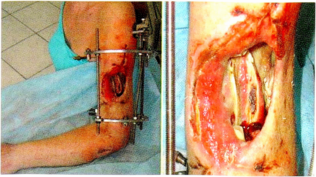 Перед использованием лоскута из малоберцовой кости проводился тщательный костный и мягкотканный дебридмент.