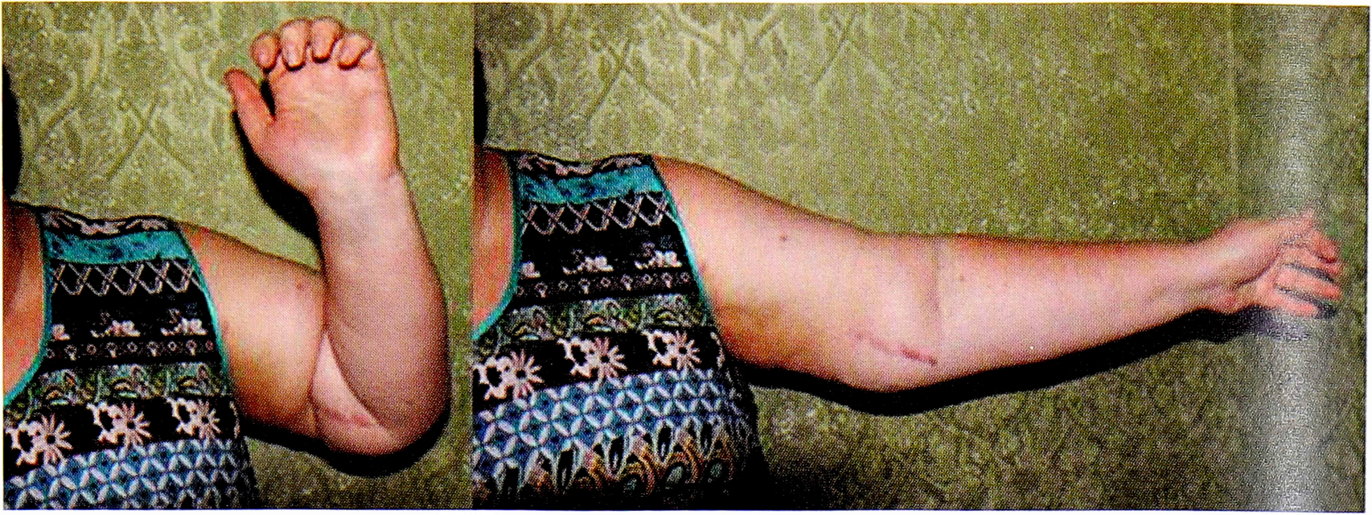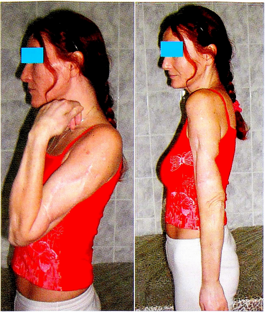 Рис. 14. Внешний вид и функция пациентки Н. через 8 мес после операции.