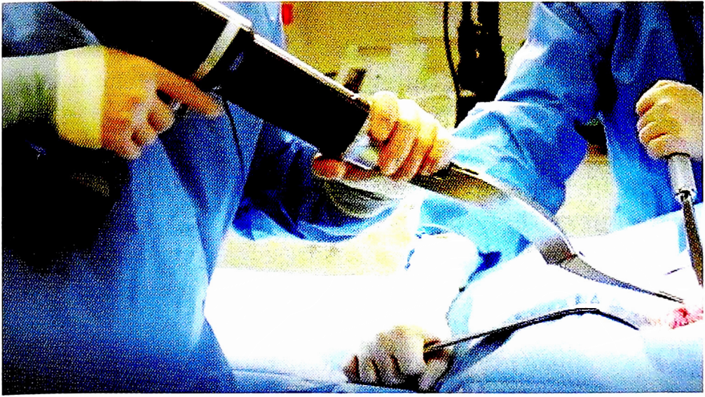 В связи с этим стали появляться инструменты, которые позволяют проводить обработку бедренного канала и имплантацию ножки не агрессивными и резкими ударами, а низкоэнергетическими воздействиями во избежание перелома. Одни из таких инструментов — новейшие хирургические импакторы. На Тихоокеанском конгрессе ортопедов-травматологов, прошедшем в августе 2016 г., были представлены видеоматериалы по их использованию (рис. 2).