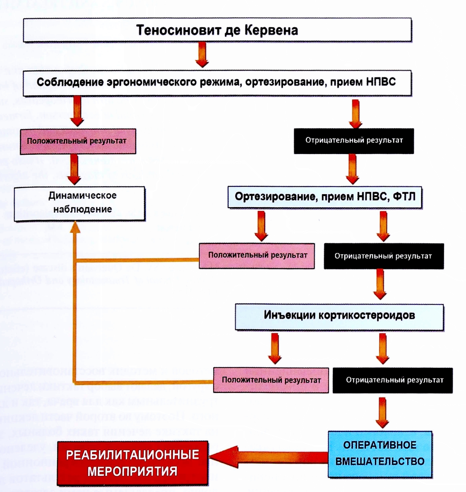 Рис. 1. Схема подхода к лечению пациентов с болезнью де Кервена.