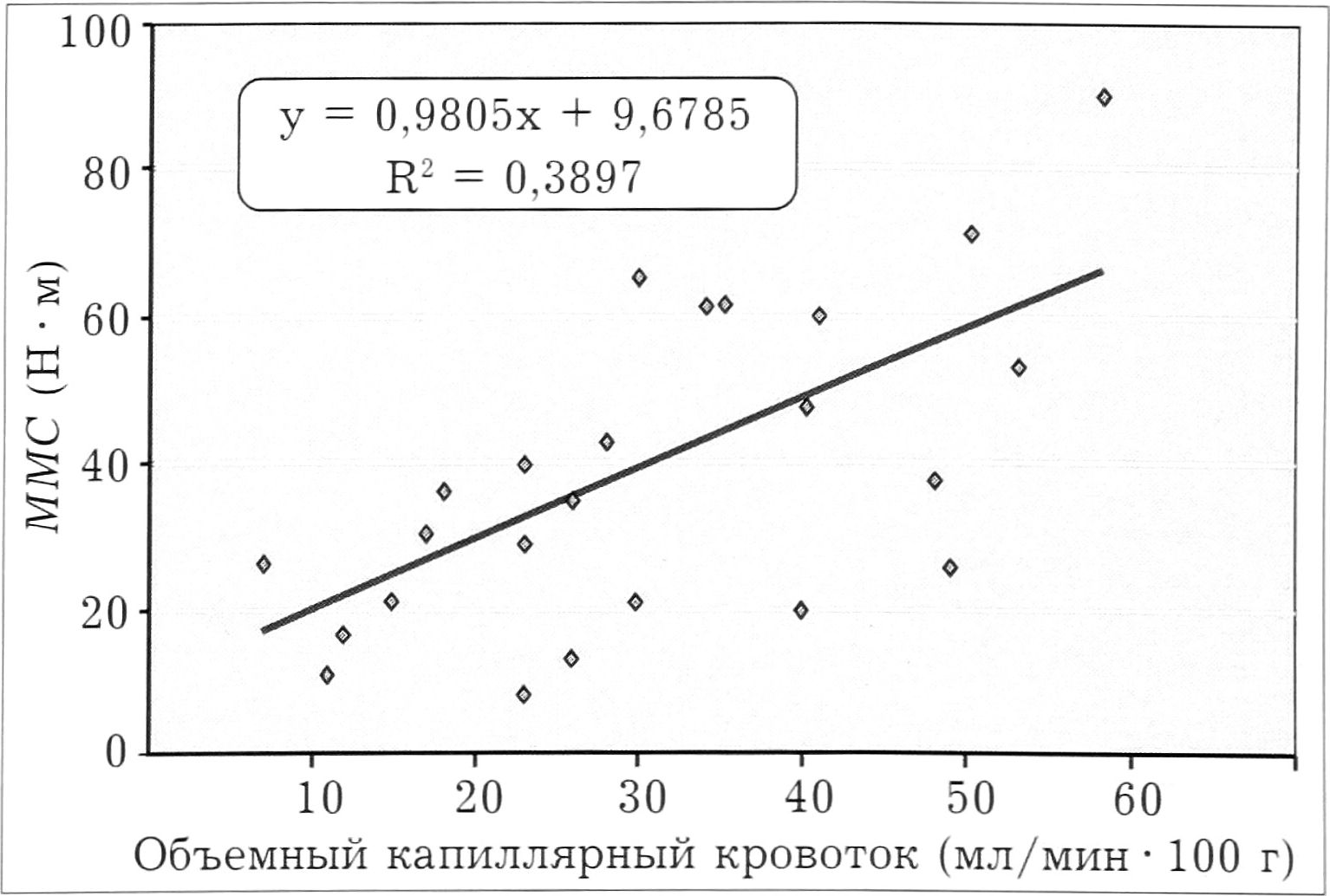 В результате статистической обработки определена тесная корреляционная зависимость между этими показателями, которую можно описать уравнением линейной регрессии: