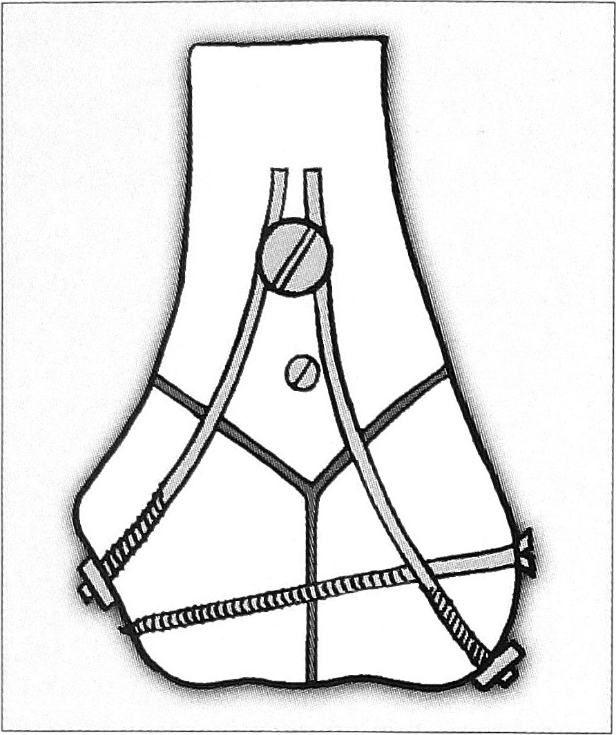 Рис. 3. Способ фиксации отломков мыщелка плечевой кости.