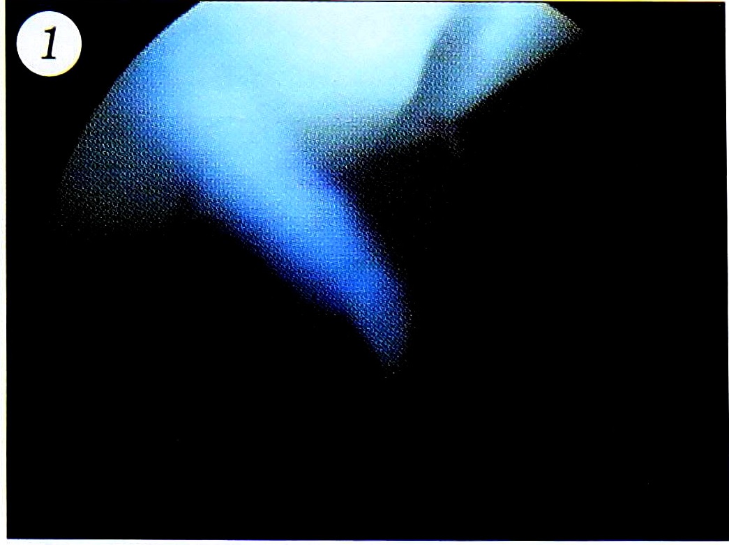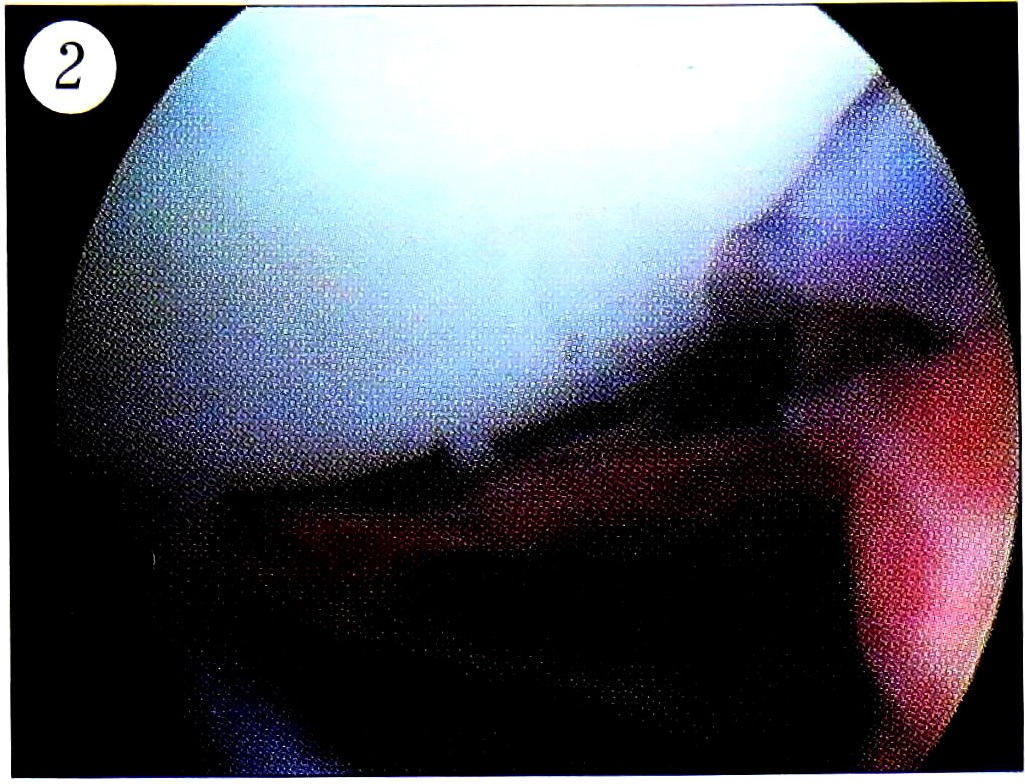 При артроскопии было выявлено, что трансхондральные переломы в 50% случаев локализовались в области хряща надколенника (рис. 1 и 2), в 31,3% — по ненагружаемой (наружной) поверхности наружного мыщелка бедренной кости, в 15,4% — по нагружаемой поверхности внутреннего мыщелка бедра, в 3,3% — по нагружаемой поверхности мыщелков большеберцовой кости. Переломы различались по распространенности (изолированные, множественные), глубине (поверхностные, глубокие, проникающие до субхондральной пластинки), виду повреждения (линейные, полигональные, кратерообразные), размеру (менее 1см, 1-3 см, более 3 см).