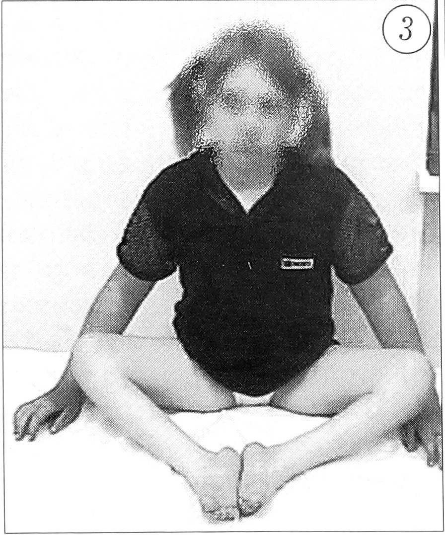 Рис. 3. Вид больной с контрактурами нижних конечностей.