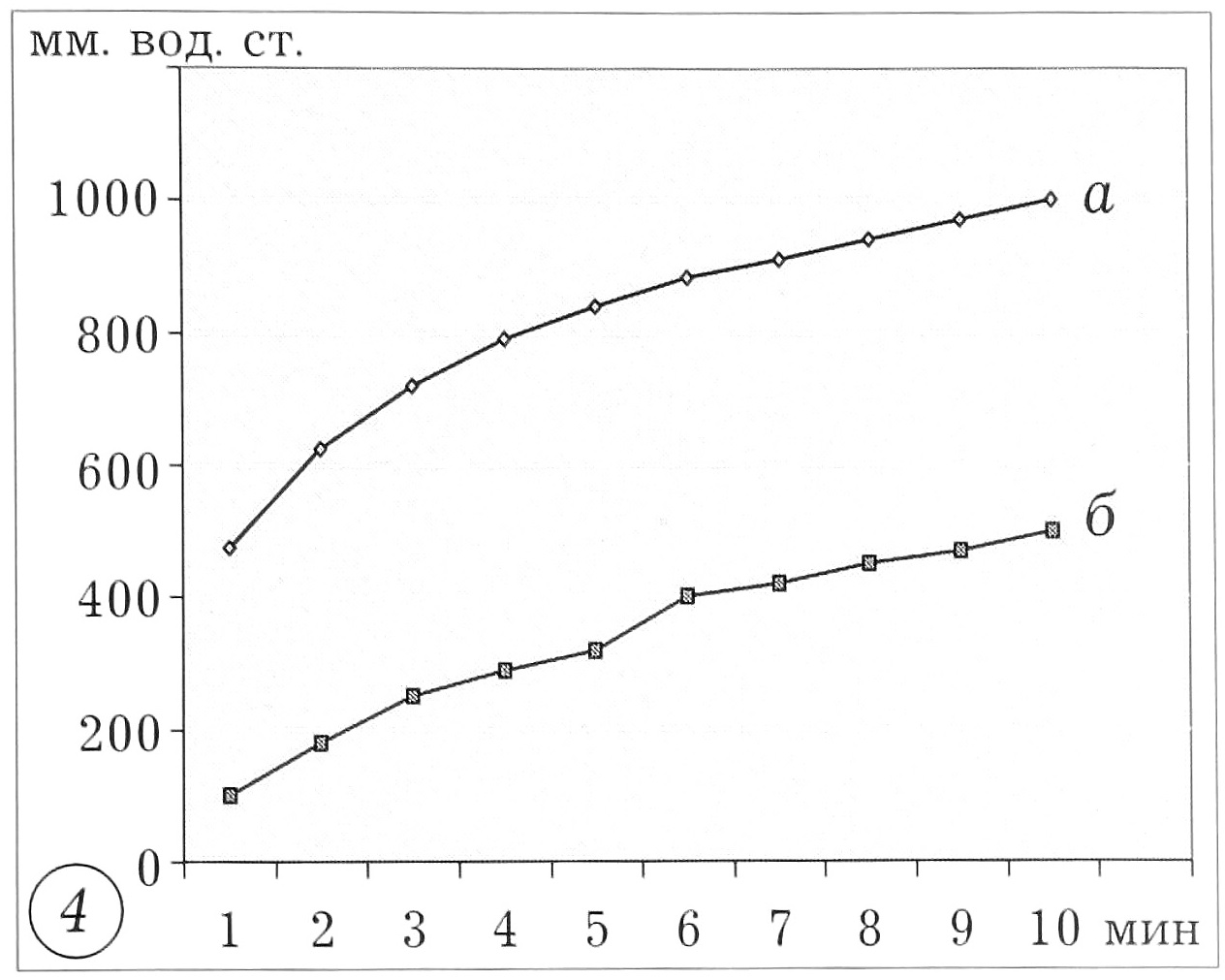 Рис. 4. Внутрикистное давление до (а) и после (б) окклюзии внутренней подвздошной артерии.